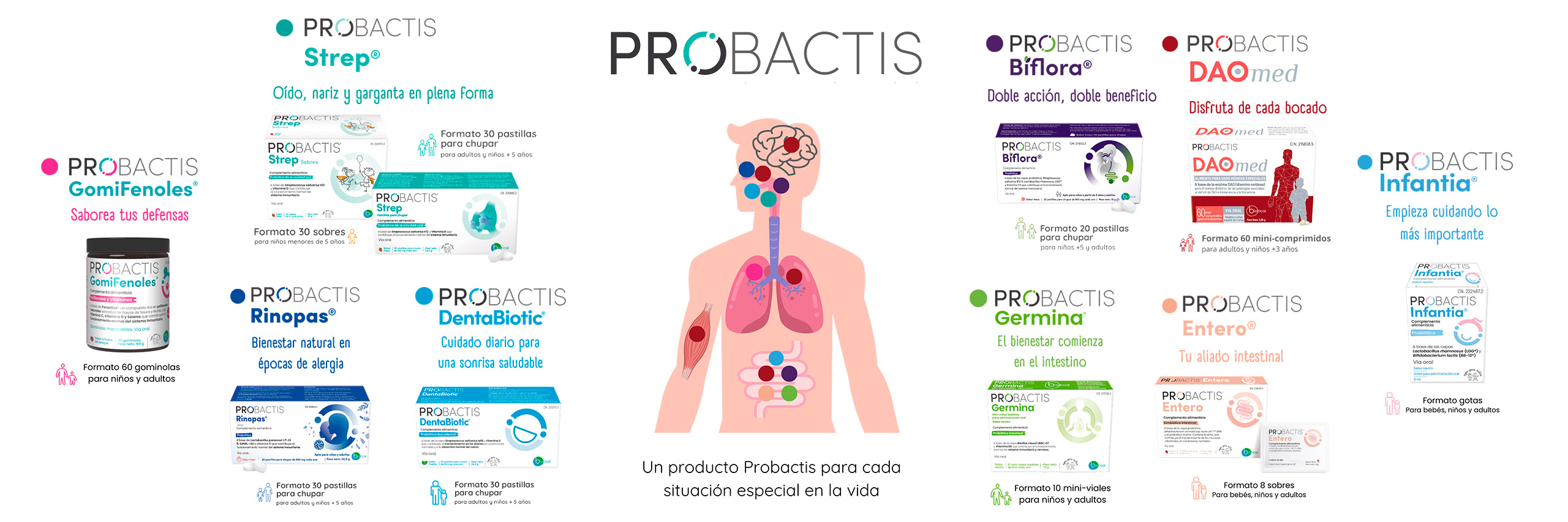 Descubre nuestra gama Probactis, una línea de probióticos naturales para adultos y niños con cepas específicas para el bienestar de la microbiota